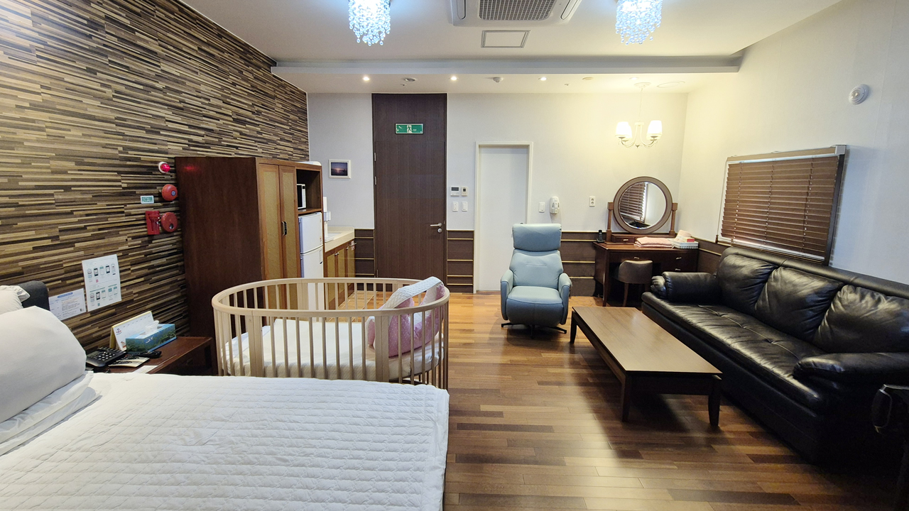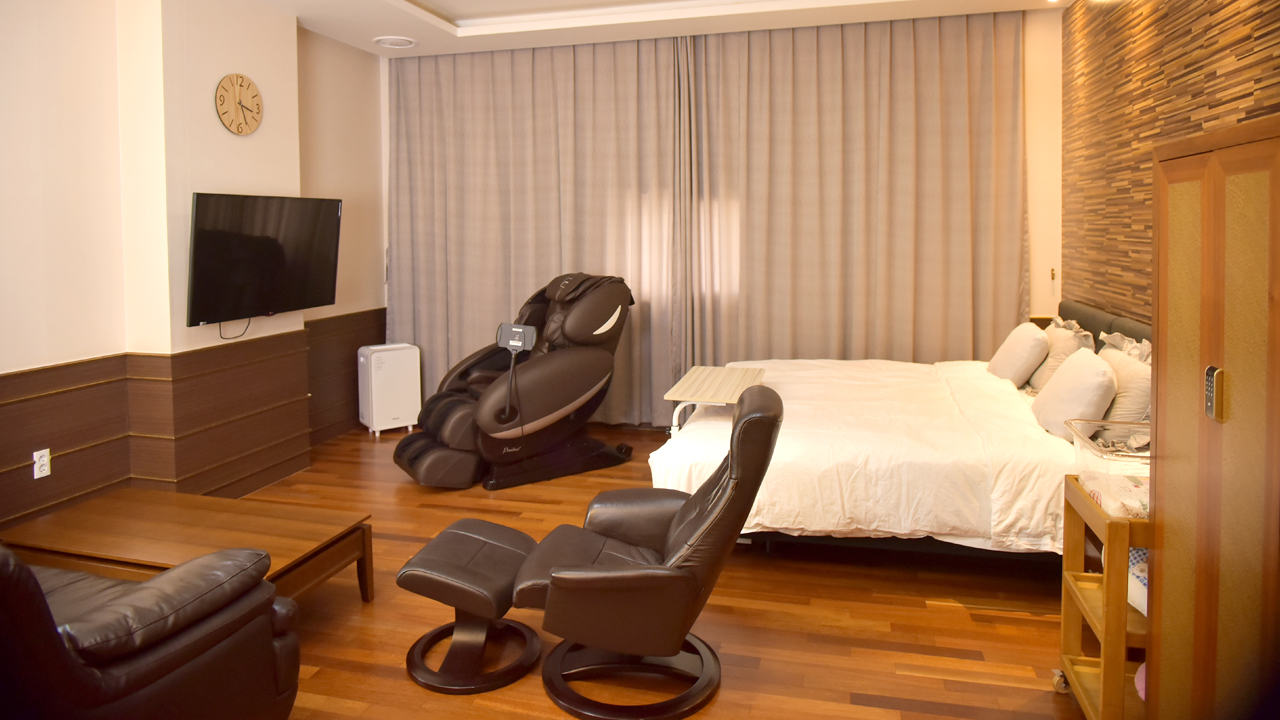 템퍼모션베드(Q), TV(50인치), 드라이기, 공기청정기, 젖병소독기, 리클라이너, 개인좌욕기, 욕실용품(샴푸, 린스, 바디샴푸, 수건 2장)